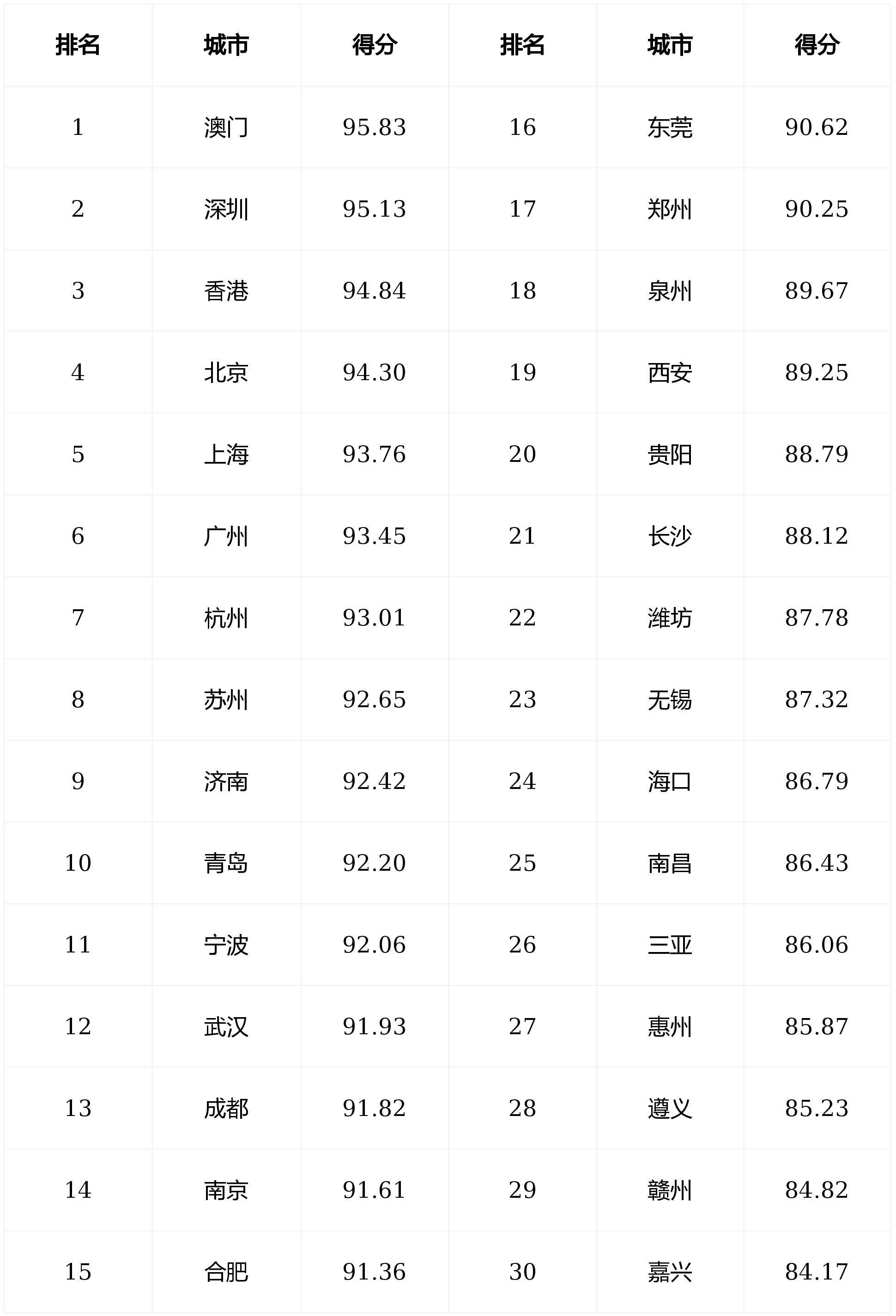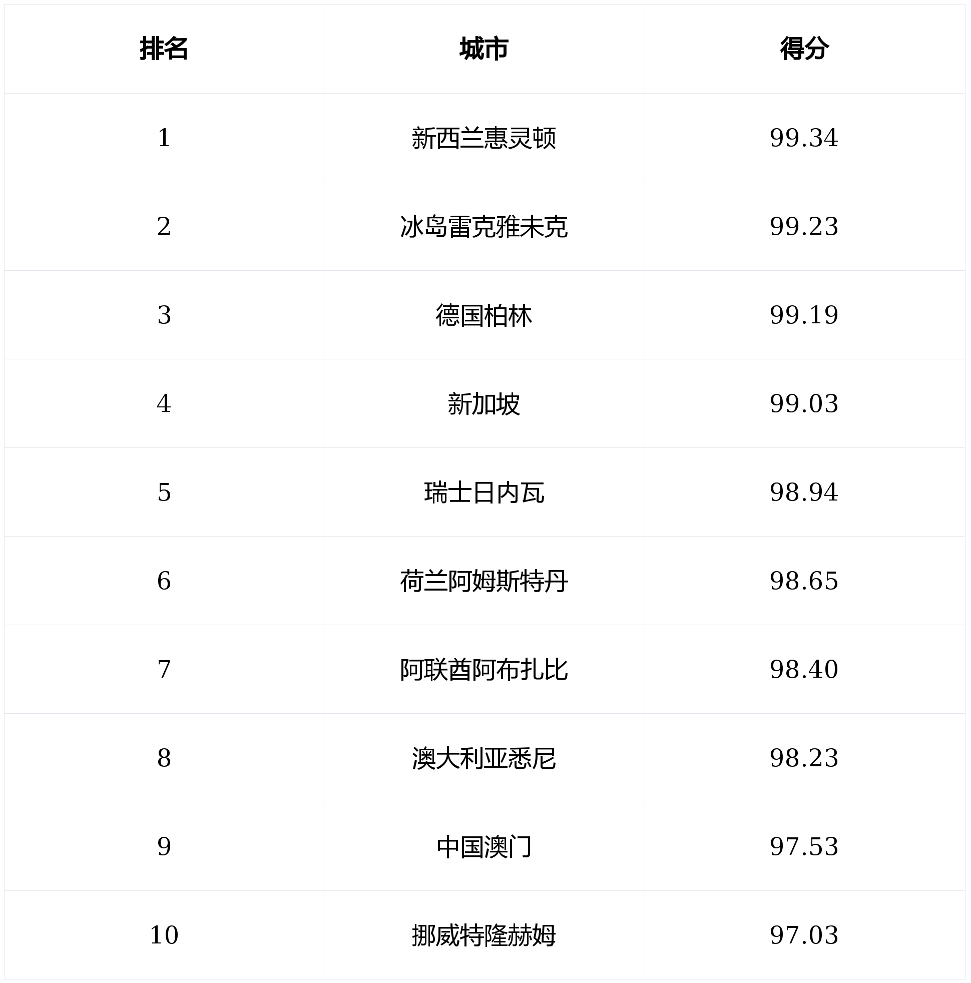 正在平安城市评价中,澳门以极低的犯罪率、高效的警务系统、严谨的及高度不变的社会次序,荣获“中国最平安城市排行榜”第一名,深圳、青岛位列第二、三位。正在“中国十佳食物平安城市排行榜”中,喷鼻港凭仗严酷的监管系统取高度的食物平安认识继续位居榜首,澳门、三位。